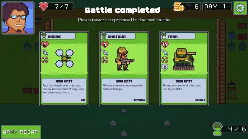 Описание игры: Frontline Command - рогалик с автоматическими битвами. Умение просчитывать ход событий заранее - главная задача, которая поможет вам одержать успех. Игра делает ставку на грамотную подготовку перед схваткой: важнее собрать толковый отряд, выбрать удачную расстановку и учесть сильные стороны бойцов, чем пытаться контролировать каждого на поле. Как только начинается бой, армия действует без ручного управления. Солдаты опираются на выбранный строй и собственные умения, а вы по сути наблюдаете за тем, насколько хорошо сработал ваш план. В распоряжении командира больше 25 видов юнитов и шесть генералов, у каждого свой набор преимуществ и свой почерк ведения войны. Игра подталкивает менять состав, пробовать свежие сочетания и искать эффективные связки. Основа Frontline Command строится на планировании на несколько шагов вперед. Почти любой выбор аукнется позже, так что думать приходится не только о текущем бою, но и о том, что ждет дальше. Случайные награды и постоянно меняющиеся столкновения делают каждый забег особенным, а продвижение по кампании заставляет без остановки подстраивать тактику под новые условия.